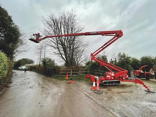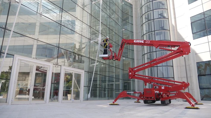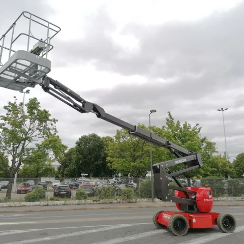 Nacelle araignée élévatrice articulée et télescopique sur chenilles d’une hauteur de travail de 23m et une portée latérale de 12,40m